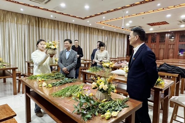 会后,谢华清一行参观了实训基地,并体验了花艺实训项目。