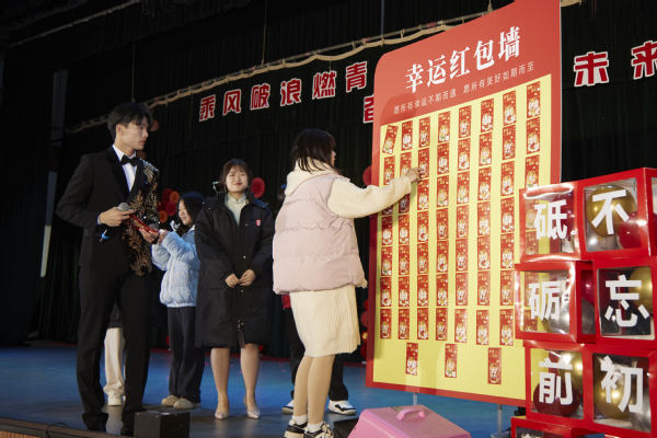 晚会现场还有振奋人心的抽奖环节,精心设计的各样抽奖方式让人摩拳擦掌,抢夺花束、口令站立,现场一片祥和热闹,一次次红包的抽取都代表着好运降临,为新年增添美好祝愿。