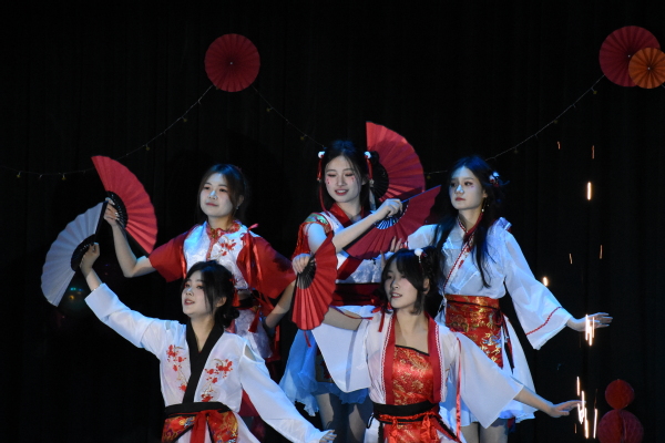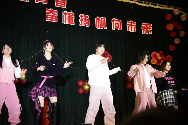 玉兔辞旧春华启,龙腾新春气象新。一支动感的开场舞《Drama》拉开了晚会的序幕,随后的《星空叙爱曲》让现场观众沉浸于浪漫的旋律,宅舞《抚摸抚摸》乐曲节奏欢快,舞姿青春洋溢。小品《拒绝拖延》让观众在爆笑热梗中领悟其中蕴含的道理;歌曲《一笑倾城》《喜欢你》甜蜜的歌词,让浪漫氛围弥漫全场。《mojito》和街舞串烧《TAM》劲歌热舞,“嗨”翻全场。一首《凄美地》引发观众大合唱。舞蹈《YOU&Me》两位舞者犹如黑白天鹅翩翩起舞,曼妙舞姿尽展青春活力。歌曲《我只在乎你》舞蹈《寄明月》《kiss kiss》,一个个精彩的节目把现场的氛围推向高潮。随着新疆歌曲《青春舞曲》欢快的鼓点,现场少数民族老师、同学情不自禁的舞动起来,让观众领略了少数民族的文化魅力。舞蹈《ice cream》歌曲《云与海》还有重磅压轴节目走秀表演《钛度》将气氛再度推高,最后演职人员齐上台,齐跳《科目三》把氛围推向最后的高潮,观众久久流连,意犹未尽。