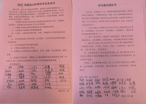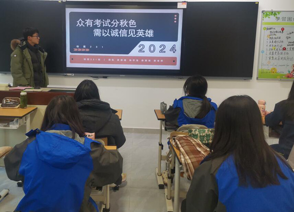 以班级为单位发布了诚信考试倡议书、开展签名承诺,鼓励学生做好复习计划,端正考试态度,以考试违纪、作弊警示教育为重点,引导学生求真务实,自觉抵制不良学习风气,杜绝考试作弊等不端行为。