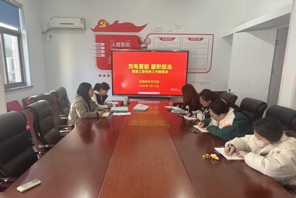 1月12日,在20号楼405室,后勤服务党支部开展主题为“充电蓄能、履职担当”的“赋能工程”党务工作者培训。活动由党支部书记袁少英主持,党支部委员、党小组长、培养联系人、结对党组织员参加。