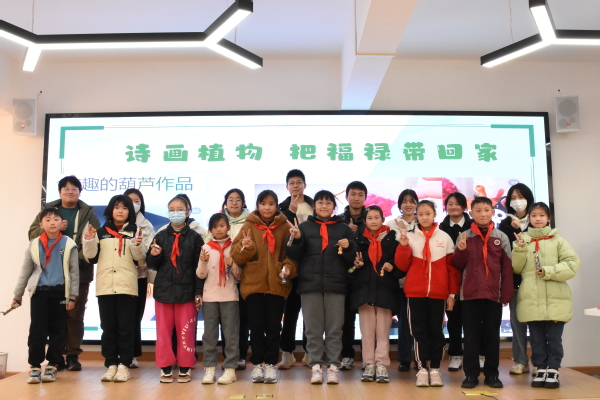 1月12日,“诗画植物、把福禄带回家”植物科普研学活动在校举行,来自松江实验小学、中山小学、岳阳小学的20位小朋友参加。活动旨在通过将科普知识和艺术创作相结合的方式,让孩子们在快乐中观察自然和体验非遗文化,提高孩子们的科学素养和艺术修养。