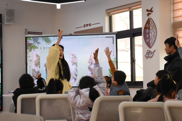 校园探秘结束后,助教们带领小朋友回到教室,进行别开生面的室内植物知识PK赛。由文创班许佳诺同学担任主讲,根据在校园认识到的植物,带领小朋友们展开了一系列的以植物猜谜、诗词赏析、城市市花精神的学习和探索。