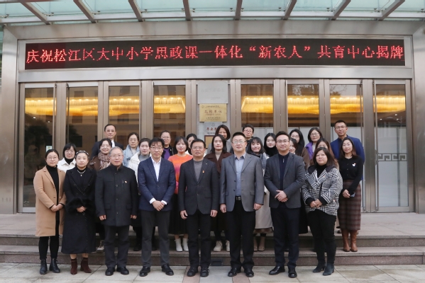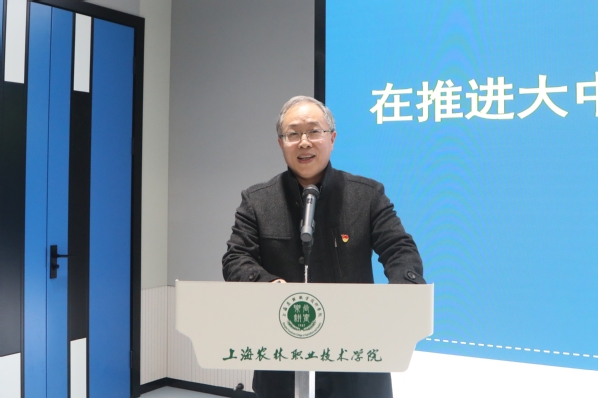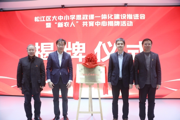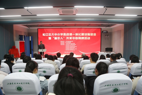 12月28日,松江区大中小学思政课一体化建设推进会暨“新农人”共育中心揭牌活动在学院召开。市教委德育处副处长杨长亮、松江区教育局副局长朱永、学院党委书记蔡红、上海师范大学马克思主义学院副院长赵银亮、松江区教育局德育科科长薛红梅出席,党委副书记、副院长邵阳主持会议。