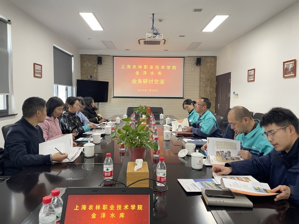 陈立婧感谢金泽水库的热情接待,详细介绍了我院教师团队的优势和特色。她指出,我院自主研发及校企合作开发的新技术和新材料可望在黄浦江上游金泽生态水源地系统的建设中发挥作用,尤其是在生态植物选择和利用、生态护坡新技术的应用、园林绿化养护管理方面有较强的优势,与金泽水库的合作交流,可以更好地发挥我院师生的技术服务能力及实践操作能力。会上,双方进行了深入交流,对构建生态型水库交换了意见。