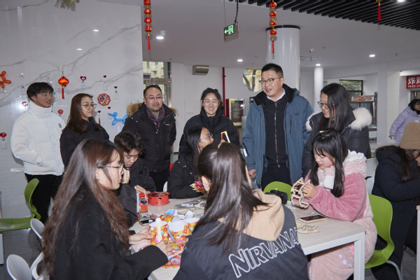 猜灯谜、品元宵、赏花灯、话民俗,邵阳向参加活动的各位同学表示热烈欢迎,向大家致以节日的问候和祝福,同时叮嘱同学们及时调整状态,在新学期设立新目标,以奋斗姿态激扬青春,取得更好的成绩。学工部部长高东菊、团委书记胡慧春与同学们围坐在一起,品尝着热气腾腾的汤圆,唠唠家常,沉浸式体验元宵节的民俗文化魅力。活动现场,易班发展中心还为同学们准备了丰富多彩的互动活动,包括画团扇、猜灯谜、做灯笼等传统元宵节活动,同学们在活动中展现了创意和团结,共同感受着传统文化的魅力和节日的喜庆氛围。