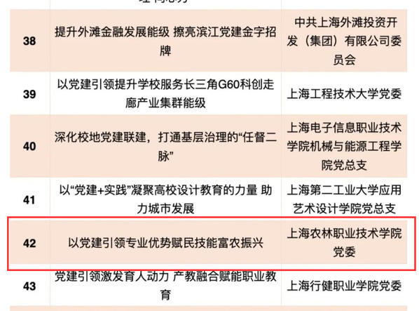 2月28日,第二届上海城市基层党建创新案例征集评选结果正式揭晓,680余个申报案例中120个具有代表性和可复制性的案例脱颖而出,其中高校系统仅7个,由党委组织部报送的案例《以党建引领专业优势赋民技能富农振兴》入围。