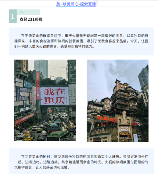 活动涵盖德智体美劳五大板块,每个板块下设不同的子项活动,包括研读红色经典、勤勉乐学、“记”可循、足寻红色基地、运动打卡、拍摄家乡美、动手创作新年作品、拍摄vlog记录家乡文化、完成家务或志愿服务等九项子活动。活动中,学生们展现出了踔厉奋发的学习态度和对知识的渴望。他们积极参与智力竞赛,展现出强智固本的学习精神,并通过比赛锻炼自己的思维能力和团队合作意识。同时,学生们积极参与体育运动,强健体魄,培养良好的体育习惯和团队精神。在美的方面,学生们展现出了创作力和审美能力。通过绘画比赛、手工制作等活动,他们展现出对美的追求和创造力,为校园增添了艺术氛围。此外,学生们还参与劳动实践,通过志愿活动、社会实践等方式锻炼自己的动手能力,培养奉献精神。