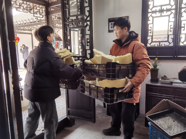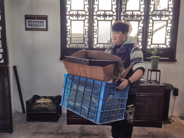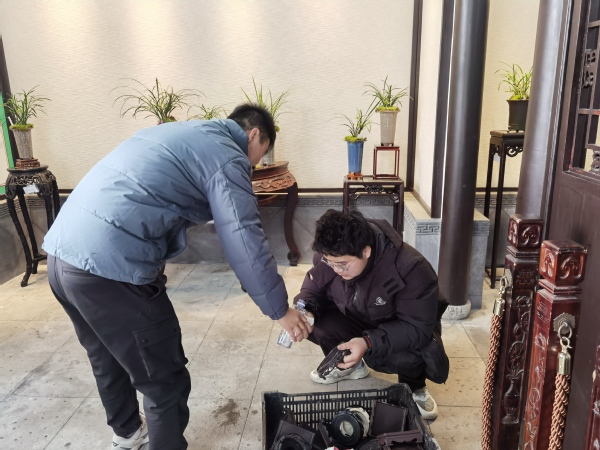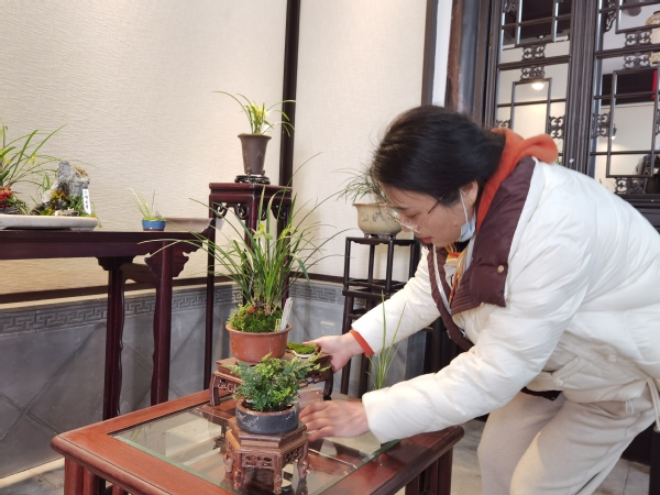 首届主题为“百春方半,九畹初馨”的“上海春兰展”即将举办,3月2日,基地工作人员在上海醉白池公园进行紧张的布展工作。