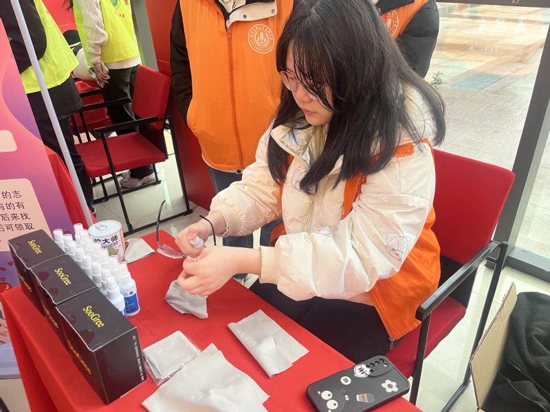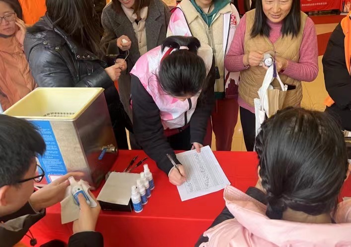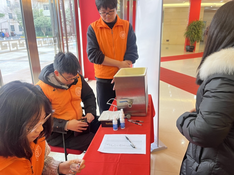 活动现场,志愿者带着提前准备好的超声波眼镜清洗仪、眼镜清洗液等布置志愿服务摊位,细心向前来的师生提供眼镜清洗、维修服务,还向同学们宣传了爱眼护眼的知识,提醒他们要定期检查视力,合理用眼,保护好自己的眼睛。