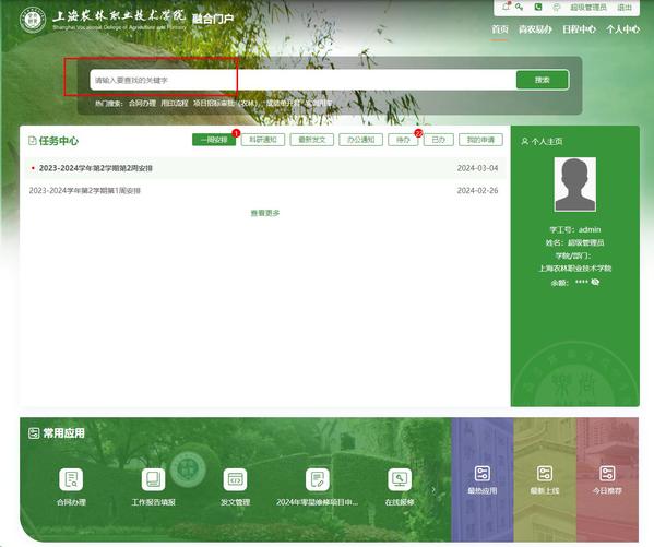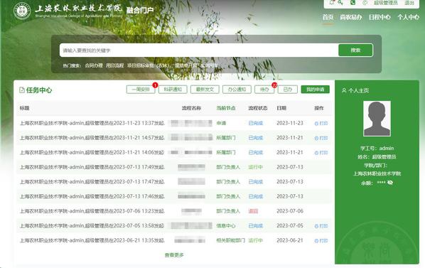 新版门户融合了信息门户、一网通办、应用系统等平台体系,集教务、学工、人事、资产、后勤等服务为一体,集中各部门所有业务流程,推行网上申请、网上审核、网上办理的统一入口,提供应用系统直达、多业务场景应用快捷办理的服务。