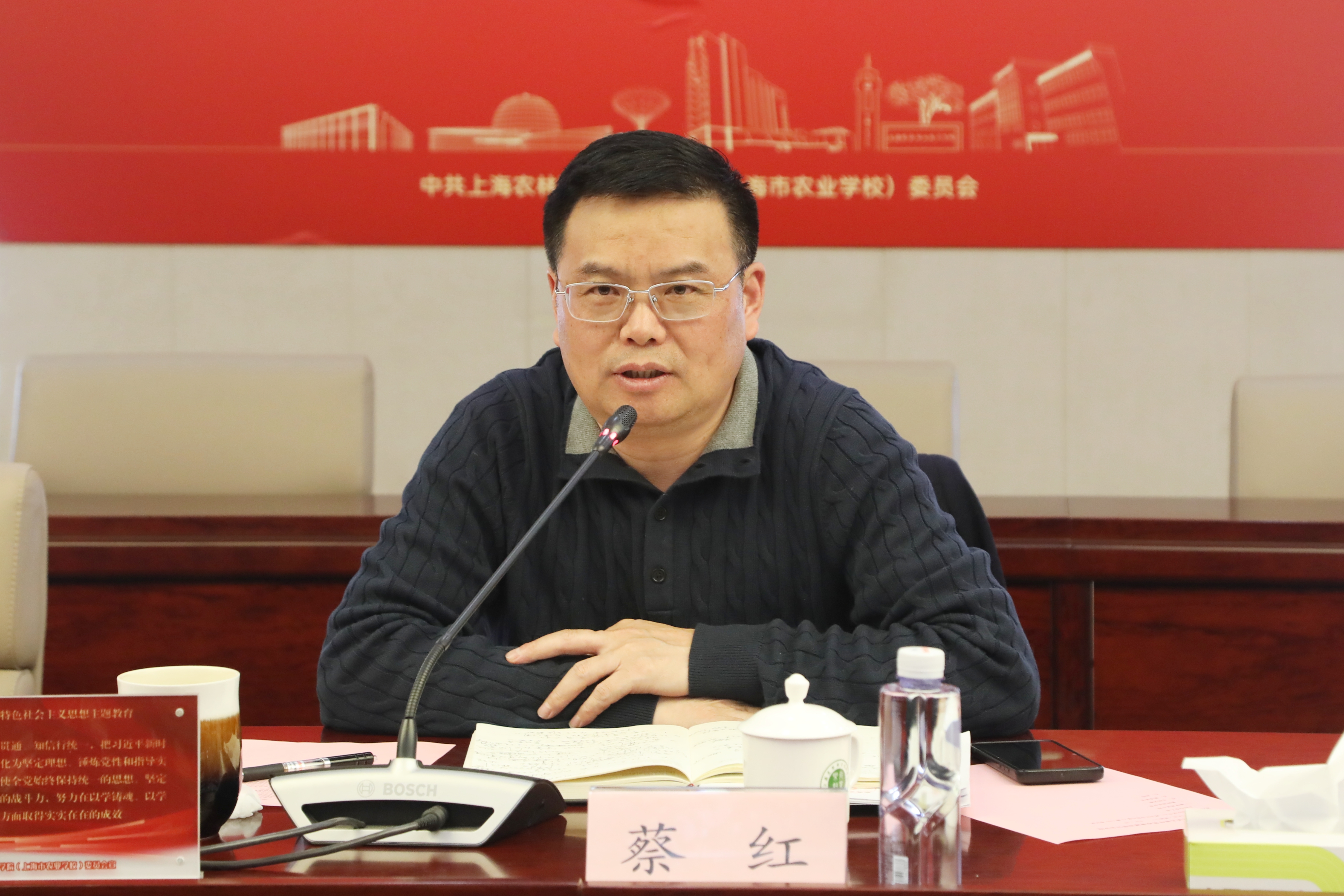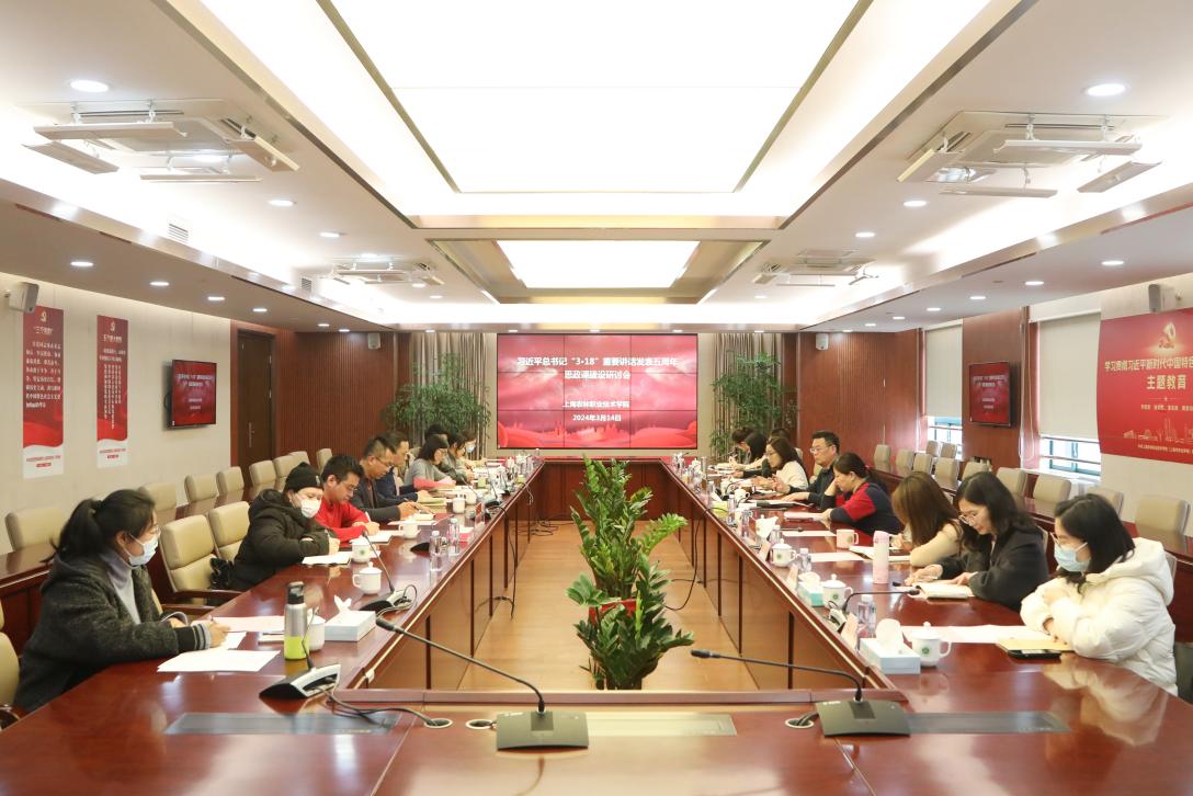 3月14日下午,在第一会议室,由马克思主义学院牵头召开纪念习近平总书记“3·18”思政课教师座谈会重要讲话发表五周年思政课建设研讨会。党委书记蔡红出席会议,华东政法大学马克思主义学院副教授张建忠,松江区茸一中学副校长王萍、松江区岳阳小学德育主任徐欢青等“新农人”共育中心联盟单位教师代表、宣传部副部长司维、马克思主义学院全体教师及优秀学生代表参加会议。会议由马克思主义学院副院长冯翠平主持。