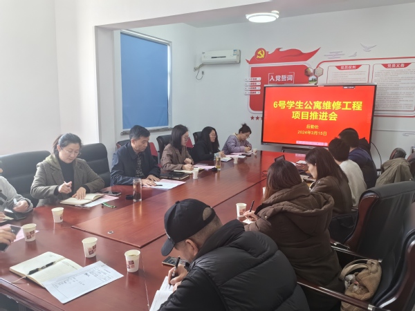 为进一步提升校舍居住条件,为学生创造一个安全、整洁、明亮、舒适、温馨的住宿环境,3月15日,在20号楼405会议室,后勤处组织召开6号学生公寓维修工程项目推进会。副院长费国强出席,学工部、后勤处、国资处、信息中心、设计单位、投资监理等部门及单位参加,会议由后勤处处长蒋洁主持。