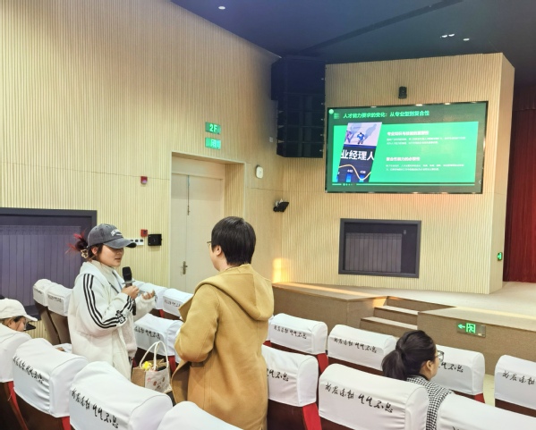 活动现场,方文怡老师从外面的世界:变、变、变;准职场人如何应对变化;如何成为合格的职场人等方面为同学们提供了详细的职业规划指导,并针对当前就业形势和农业行业发展趋势进行了分析和解读,通过测评、游戏和提问等互动形式,帮助同学们深入了解自己的兴趣、性格和能力,引导同学们找到适合自己的职业方向。