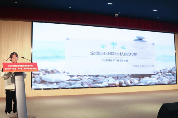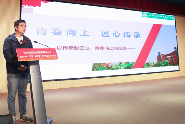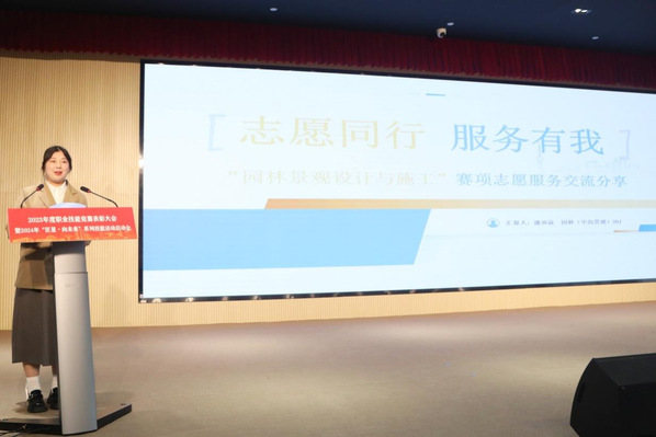 会上,2023年全国职业院校技能大赛“生物技术”赛项一等奖获得者生物212刘佳楠、“园林景观设计与施工”赛项一等奖获得者园林(中高贯通)192班金朝朝、“园林景观设计与施工”赛项优秀指导教师沈丰现场分享了参加国赛的经历和体会,2023年全国职业院校技能大赛优秀志愿者园林(中高贯通)201潘孙焱分享了参与大赛志愿者工作的收获和感悟。