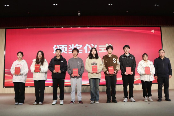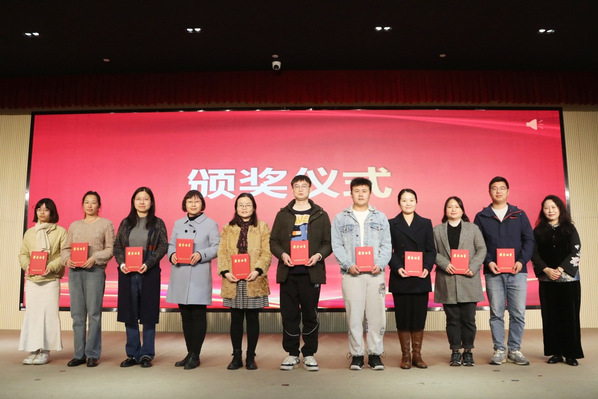 张江宣读了《关于表彰2022-2023 学年技能竞赛技能标兵及优秀指导教师的决定》,学院对邱浩阳等76名学生授予“技能标兵”荣誉称号,对沈丰等37名教师授予“优秀指导教师”荣誉称号,他对获奖的师生表示热烈祝贺,并寄以厚望,希望受到表彰的师生再接再厉,不断提高技能水平,全校师生向优秀榜样学习。随后,学院领导为获奖师生代表颁奖。