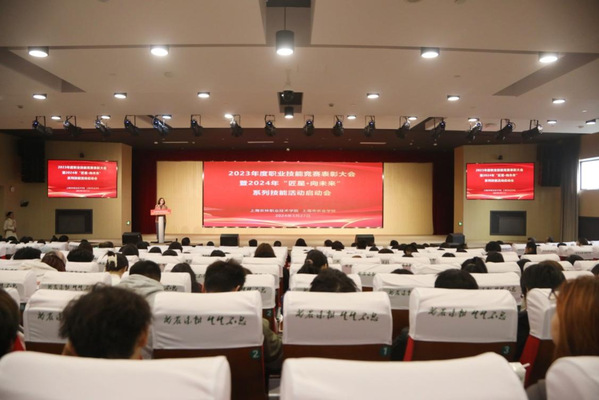 3月27日,在205报告厅,学院召开2023年度职业技能竞赛表彰大会暨2024年“匠星•向未来”系列技能活动启动会,院长陈立婧、副院长张江出席,教务处、教学部门负责人、获奖师生和师生代表200余人参加会议,会议由教务处处长王欢主持。