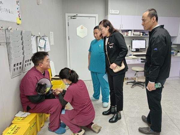 走访过程中,滑志民一行参观了宠物医院的工作环境,与在岗的实习生和毕业多年的我校学生亲切交流,仔细询问了他们的工作内容、薪资待遇以及生活情况,同时勉励学生在工作中多向前辈虚心请教,细心踏实,积极主动,提高专业实践能力。