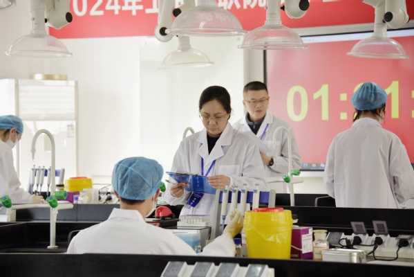 本次生物技术竞赛项目对标全国职业院校技能大赛要求,设置理论考核和磁珠法提取鸡血DNA操作两个模块,对接生物医药产业新技术要求,全面考核了参赛选手在专业知识储备、技术技能操作、实验安全规范等方面的综合能力。