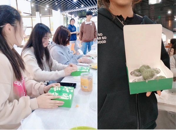学生会在现场准备了馅料,擀面杖,模具等,也在现场布置了制作区、蒸煮区、休息区,同学们在动手体验的同时,也能更好地了解清明这个节日。