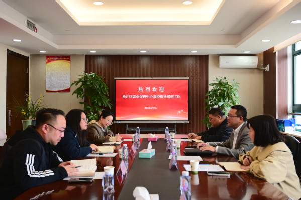 4月7日,松江区就业促进中心副主任彭晓镝、创新创业科科长许华丽等一行4人来校调研指导双创工作,学工部、团委、创新创业学院等负责人参加。