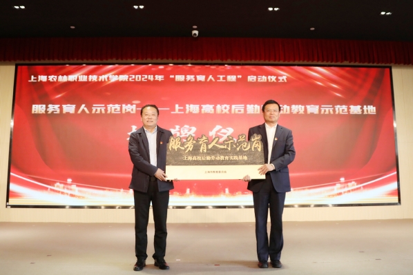活动当天,市教委后保处党支部参加了学院2024年“服务育人工程”启动仪式。市教委后保处处长张旭向学院授牌“服务育人示范岗-上海高校后勤劳动教育实践基地”,希望学院继续发挥党建引领、为农服务的特色,通过“服务育人工程”的开展,持续深化改革,形成可复制推广的工作经验,加强与其他高校的交流与合作,共同探讨和分享服务育人的有效路径和模式。随后,双方共同参观了学院实训基地农机实训室、园林绿化实训园、果蔬生产实训园、种养结合实训园、花卉生产实训园、动物实训温室等实训场所。参观过程中,双方就节能减排、后勤保障、实训室安全管理、党建引领等具体问题进行了深入的交流。