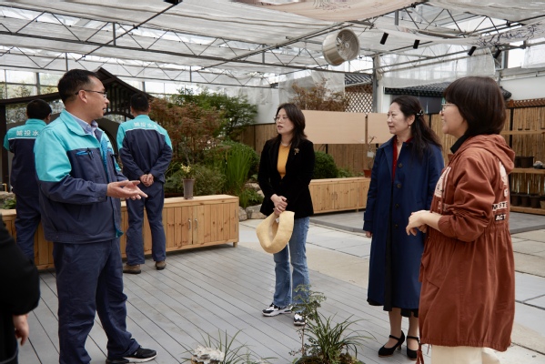 陈立婧对张旭坤一行表示热烈欢迎,希望校企双方进一步加强合作,共同服务黄浦江上游金泽生态水源地系统建设。富剑文介绍了实训基地服务教学和社会的基本情况,张微微交流了植科系在植物育种、种苗培育、园艺产品生产、植物配置等方面的特色。
