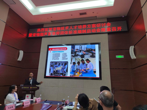 大会同期举行了“宠物技术人才培养经验研讨会暨宠物超声影像师团体标准启动会”,我院是标准共同起草单位。宠物行业对专业技能人才需求旺盛,尤其是宠物超声影像技术人才更是行业紧缺的急需人才,相应的从业人员考核标准还是空白,本次标准的研讨为推动行业健康发展,促进宠物影像人才培养改革有着重要意义。同时,滑志民在会上还作了“大都市背景下动物医学专业高素质人才培养的探索与实践”的专题报告,与参会兄弟院校交流了宠物医疗人才培养的改革经验和成效。