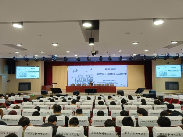 陆琳以“职场适应—实现学生向职业人的转变”为主题,深入浅出地阐述了毕业生们从学校走向社会,从学生身份转变为职业人过程中所需要面对的挑战与机遇。她指出,职场适应不仅仅是技能上的提升,更是心态和角色的转变,并鼓励毕业生们要保持学习的心态,不断提升自己的专业素养和综合能力,以应对职场中不断变化的需求。同时,强调了团队合作和沟通能力的重要性,指出在职场中,良好的人际关系和沟通技巧是成功的关键。最后,她表示母校永远是毕业生们坚强的后盾和温暖的港湾,希望学生们能够在未来的职场中展现出色的才华和卓越的能力。