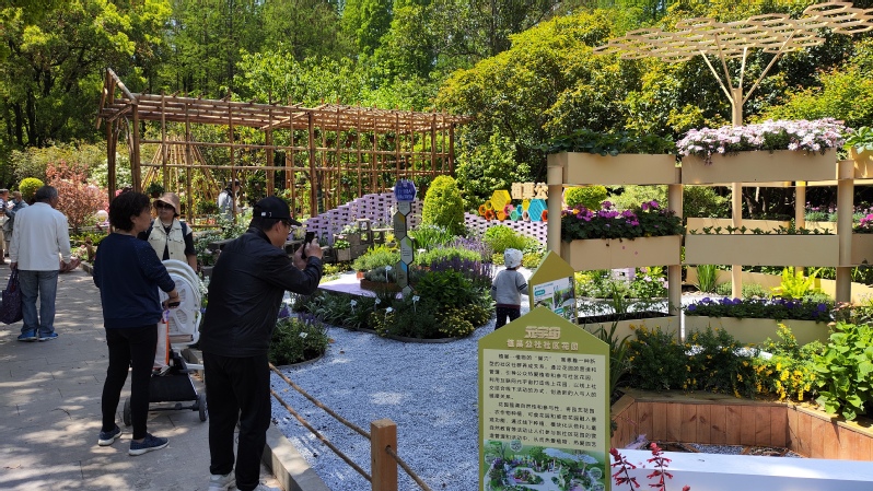 作品已经在上海植物园进行实景展示,其布展施工由植科系师生与上海恒艺园林绿化有限公司共同完成。自3月初起,植科系设计团队积极与施工单位及园区负责人对接,全程参与布展施工流程,汪蓉、陈睿智、李想同学在周清新和赵普莹老师的指导下,对施工过程中的细节进行把控与协商,并完成局部装置的制作与安装,保证展园整体景观效果。同时为更好地展现设计方案中线上线下交互式体验的社区花园设计理念,合作打造的同款元宇宙花园同期上线,让设计方案中线上社交线下活动的新型社区花园设计运营模式得以呈现。