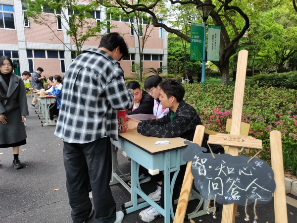“智·知心问答会”摊位以轻松有趣的方式普及心理健康知识。同学们通过参与答题挑战,不仅在娱乐中增长了知识,也提升了对自我心理健康的认知。