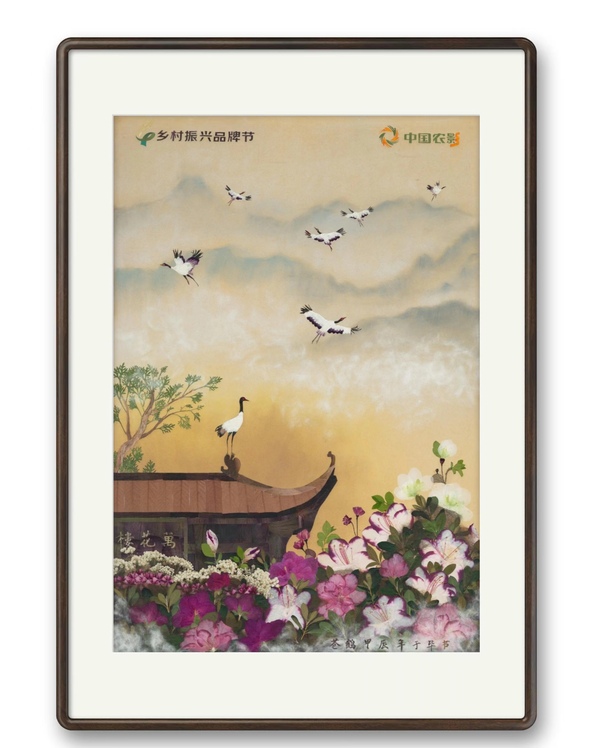 《鹤舞杜鹃》是数字经济与创意系团队为中国乡村振兴赋能计划走进贵州毕节专门创作的一幅压花画作品。