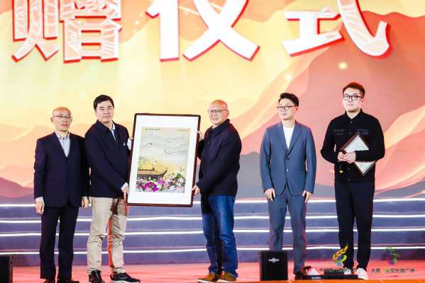 随后,创作人苍鹤、创意系主任路以兴将《鹤舞杜鹃》数字藏品原版画捐赠给乡村振兴赋能计划组委会,中国农业电影电视中心党委委员、副主任欧阳海洪、运营中心主任上官王强接受捐赠。《鹤舞杜鹃》数字藏品原版画将以非卖品形式在中国农业电影电视中心永久保留。