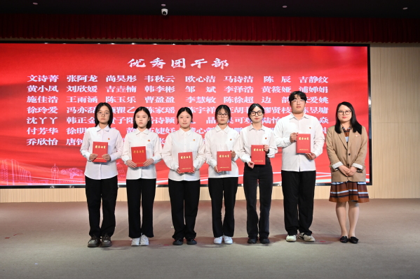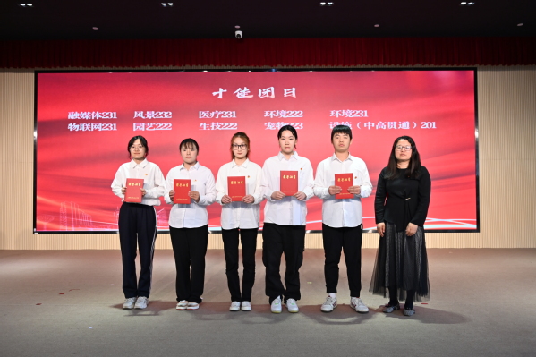 大会宣读《共青团上海农林职业技术学院委员会、共青团上海市农业学校委员会关于2024年“五四”评优表彰的决定》,授予徐玲爱等49人“优秀团干部”荣誉称号,授予胡艳玲等84人“优秀团员”荣誉称号,授予余子慧等24人“优秀团支书”荣誉称号,授予软件231班团支部等17个团支部“活力团支部”荣誉称号,授予园艺222班团支部等17个团支部“先进团支部”荣誉称号。授予知行社等10个社团“十佳社团”荣誉称号。授予环境222班团支部等10个团支部的团日活动“十佳团日”荣誉称号。党委学工部部长高东菊、副部长张莎莎和各系党总支负责人为获奖代表颁发荣誉证书。部分获奖代表围绕共青团组织育人、实践育人、团学骨干成长等工作进行青春报告。