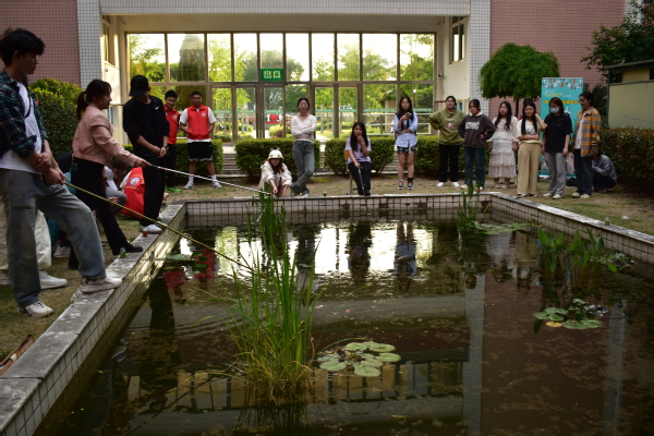5月13日,动科系在一教中央水池举行第十届宠物嘉年华系列活动之钓鱼比赛。系部辅导员、团学骨干、参赛选手等100余人现场观摩。