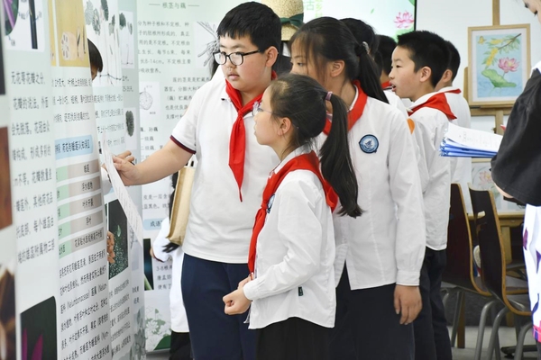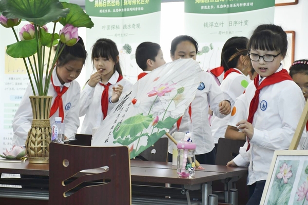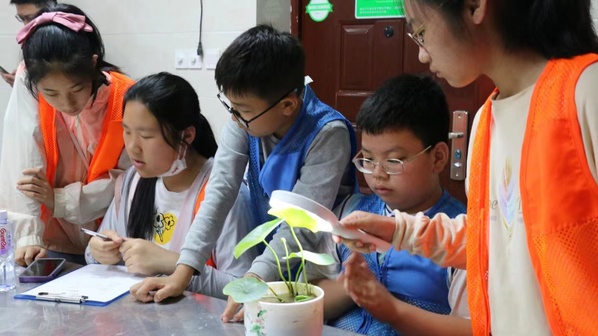 5月17日,学院还联合松江第二实验小学举办了一场浸式荷花生态科普活动。活动当天,在创意系师生的引导下,松江第二实验小学的学生通过一系列实践活动,近距离接触荷花,了解荷花的生长、生态和生活习性。