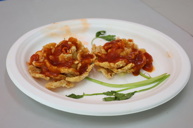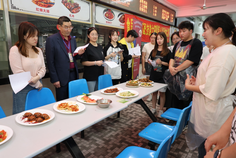 比赛以“膳食擅养,营养搭配”为主题,选手需围绕主题在70分钟内制作一荤两素三道成品菜。随着主持人宣布开赛,选手们迅速戴上口罩,穿上围裙,炒制美食,氛围火热。热炒结束后,评委和嘉宾根据每道菜的色香味形进行评分并点评,现场观众作为大众评审品尝评分。宗洪银从刀工、摆盘、色泽、口味等方面对选手作品分别进行点评。经过评选,医疗221张智昊得分最高,荣获一等奖,园艺221韩正金、文创222沈奇荣获二等奖,生检231吴天慧、环境231李金金荣获三等奖。