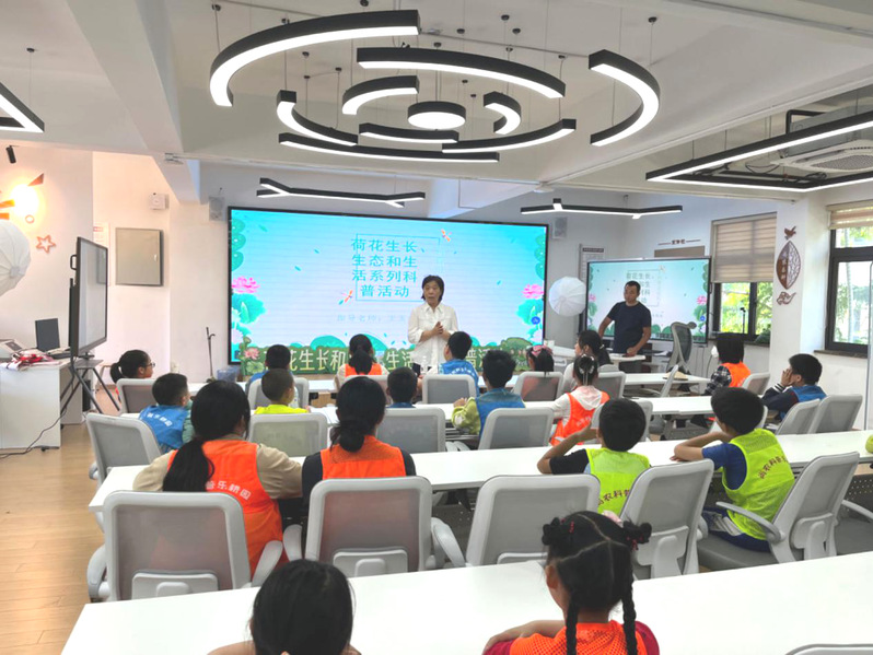近日,我校农经楼308教室热闹非凡,一场由岳阳街道主办、上海农林职业技术学院承办的2024年长三角G60科创走廊(松江)科技节重点活动—— “荷之韵”科普活动在此举行。 “荷之韵”科普活动旨在增进公众对荷花生态、生物学特性和科学价值的认识,同时提高参与者对自然保护的意识,并培养青少年对植物学和生态学的兴趣,共有社区群众、孩子与家长共40余人参加。本次活动依托松江区科普项目《荷花生长、生态和生活系列科普活动》。