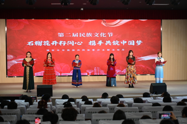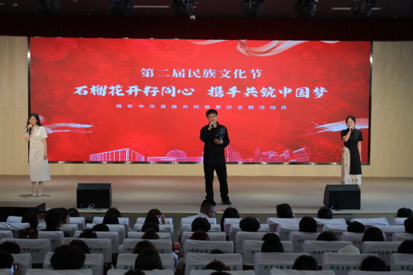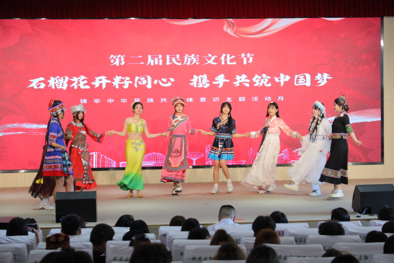 为铸牢中华民族共同体意识,弘扬中华优秀传统文化,丰富校园文化生活,展示民族风采,凝聚民族情谊,增进师生交流交往交融,引导广大青年学生听党话、跟党走,手足相亲、守望相助,5月22日,“石榴花开籽同心 携手共筑中国梦”第二届民族文化节开幕。党委副书记、副院长邵阳出席,党委宣传部(统战部)、学工部、团委、各系学生工作负责人、团总支书记和200余名学生代表参加。