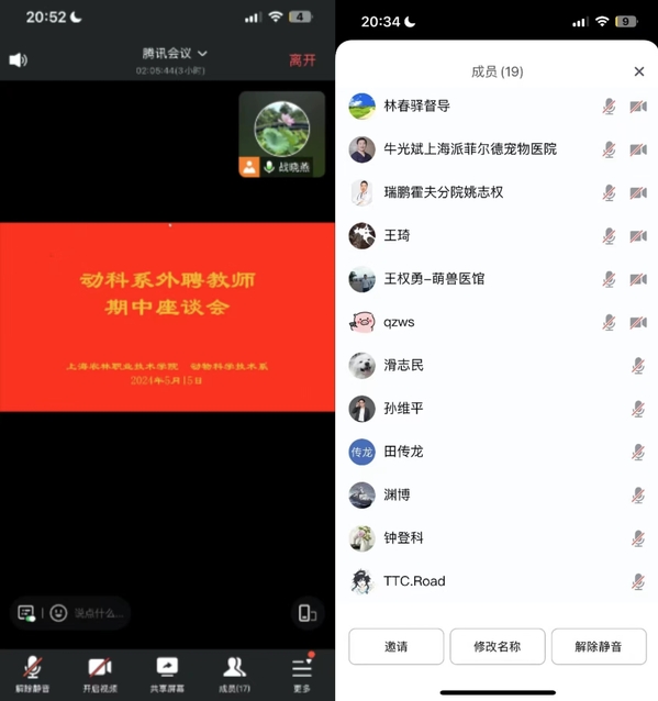 为深入了解外聘教师的教学情况,进一步提高专业教学质量,5月15日晚,动科系召开外聘教师线上期中座谈会。学院督导林春驿教授、动科系主任滑志民、副主任战晓燕、教研室主任和动科系本学期授课的全体外聘教师参加会议。会议由战晓燕主持。