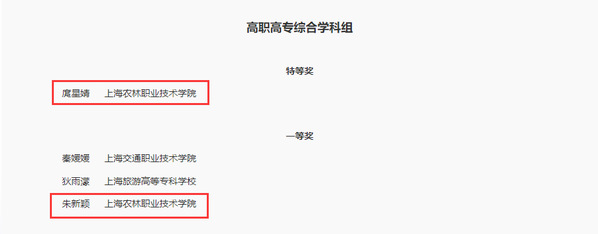日前,第六届上海高校青年教师教学竞赛成绩揭晓,青年教师庹星婧、朱新颖分获高职高专综合学科组特等奖和一等奖,学院获优秀组织奖。
