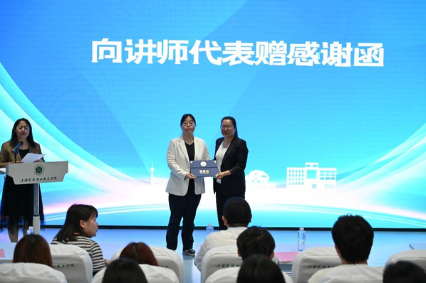 高东菊向讲师代表赠感谢函。