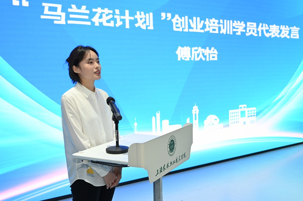 “马兰花计划”创业培训学员代表傅欣怡发言。