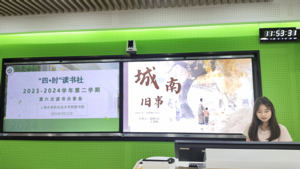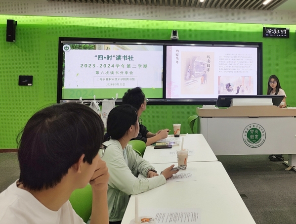 5月22日中午,在综合楼403室,“四·时”读书社开展了读书分享活动,由读书社成员、园林231班王倩楠同学分享台湾女作家林海音的自传体小说《城南旧事》。对本书感兴趣的成员们共同感受主人公小英子的童年故事。副社长、风景232班李陈希同学主持读书分享会。