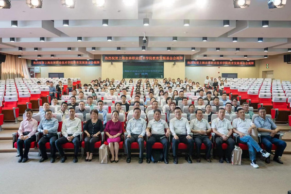 5月25日,学院在综合楼205报告厅举行教育发展基金会揭牌仪式。中国银行松江支行党委书记施利英、上海农商银行松江支行副行长樊家康、上海华维可控农业科技集团股份有限公司董事长吕名礼、校友代表,校领导蔡红、陈谊、邵阳、费国强、潘国俭、张江出席,各部门负责人、专业系书记,学生代表参加。揭牌仪式由教育发展基金会秘书长费明主持。