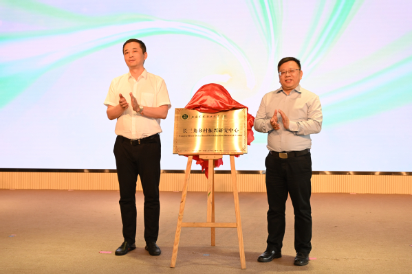 上海农商银行松江支行副行长樊家康、张江共同为长三角乡村振兴研究中心揭牌。