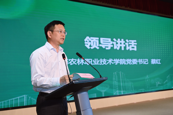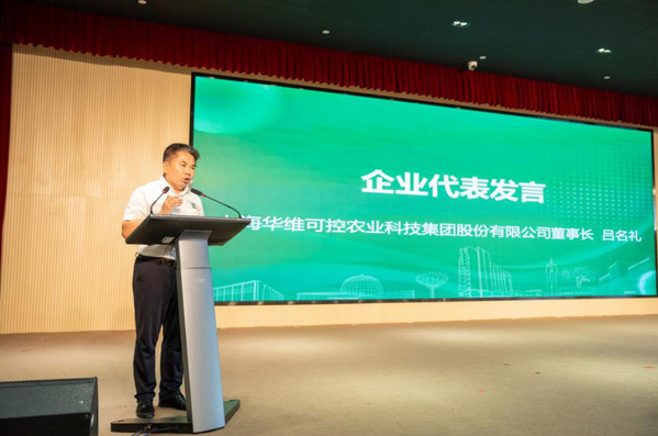 上海华维可控农业科技集团股份有限公司董事长吕名礼作为企业代表发言。他表示,华维集团与农林学院有着深厚的感情,多年来,在人才培养、技术研发与合作、实训基地建设等方面一直保持着良好的校企合作关系。华维公司一直以来高度重视校院的教育事业和人才培养,希望未来在人才培养、专业建设、产业服务等方面进一步深入融合,发挥各自资源和经验优势,推动双方在更高层次、更宽领域交流合作,实现优势互补、要素互通。