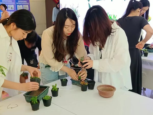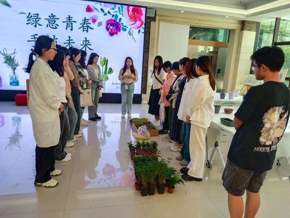 5月28日,在综合楼一楼大厅,植科系举行“绿意青春 手植未来”组合盆栽体验活动,吸引了20名同学参与体验。活动旨在引导学生们关注生活细节,感受自然魅力,培育生活之美。