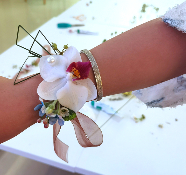 同学们在徐老师的指导下,通过亲手挑选和搭配各种美丽的花卉,设计出独一无二的手腕花作品,感受花卉的美好,展现个性和品味,让青春在花香中绽放。