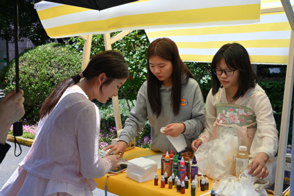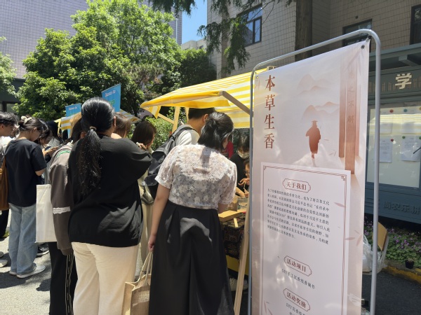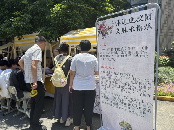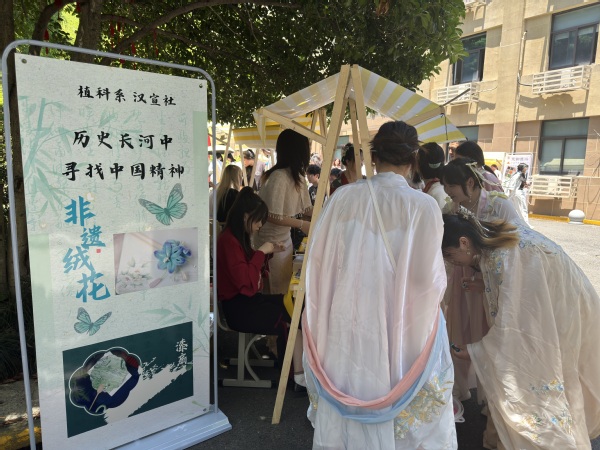 活动现场,汉宣社、花艺社、指尖艺术社等传统文化社团以展示、互动体验相结合的形式呈现,涵盖书法、汉服、中草药香囊制作、非遗漆扇体验、非遗绒花作品展等社团项目。老师们一边与同学们亲切交流,一边仔细参观了各个社团的展示项目,对同学们的热情投入和精湛技艺给予了高度评价。此次社团巡礼还与民族文化节、第二课程成果展同时进行,为校园营造了浓厚的文化氛围,让往来师生情不自禁驻足观赏、游玩。